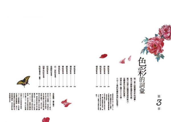 ►畫面意象解讀:14大類的顏色分類、跨頁主題搭配的繪畫……