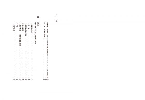 大自然展現生命與存在,有其特殊的方式——無孔不入,既強韌又無為,一隅之地那怕是隙縫,草們都可以找到安家落戶的地方。一般泛泛統稱的草,是一個偉大而龐雜的群族,它們以啟山林,無畏於石罅岩盤,扎根深化土地,為森林之先導,亦為蟲魚鳥獸獻上禮物。