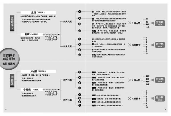 「奧修禪宗塔羅牌」是以塔羅牌的結構,來詮釋表達奧修的主要思想。因此本書開宗明義,特別繪製了奧修禪卡與塔羅牌的結構對照圖解,讓讀者清楚整副牌的邏輯結構,並與塔羅牌互相參照,對於初學者甚有幫助。而且,只要跟著書中的解析,弄清楚象徵符號背後指向的意義,就可以很清楚的看到奧修禪卡與塔羅牌之間的同質性,並進一步看見奧修禪卡擁有一般塔羅牌所沒有的特質──穿越心靈跟現實,一路看進底層。