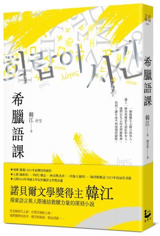 《希臘語課》是韓江探索感官的消逝、溝通的渴望,以及語言本質的作品。故事講述了兩個平凡人在各自痛苦的時刻相遇,卻發展出一段意想不到的情誼。就算失去語言與觀看的能力,兩人逐漸發現彼此間有種深切的連結,他們用聲音與觸覺交織出驚人的美感,如同從黑暗走向光明,從沉默走向呼吸與表達。這是一封描寫人與人之間親密與連結的溫柔情書,一部喚醒感官、鮮明描摹「活著」意味的小說。