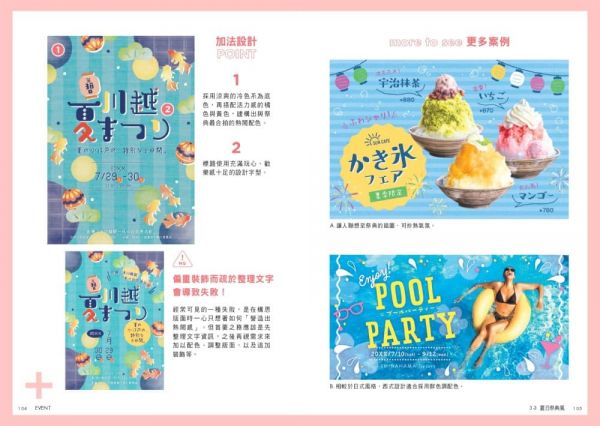 A:重點在於「加在什麼地方」上!建議先針對大、小標題與主視覺照片等,從主要元素的裝飾手法進行加法思考。讓版面提升熱鬧感與親和度的同時,也強調主要元素。也可以試著增添不同顏色及圖案。
