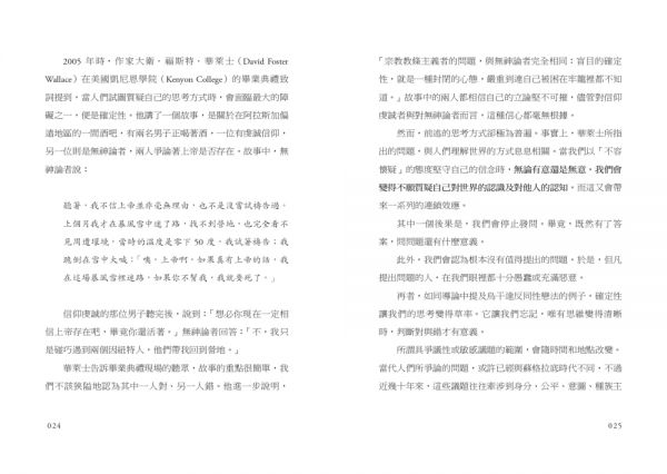 再者,如同導論中提及烏干達反同性戀法的例子,確定性讓我們的思考變得草率。它讓我們忘記,唯有思維變得清晰時,判斷對與錯才有意義。