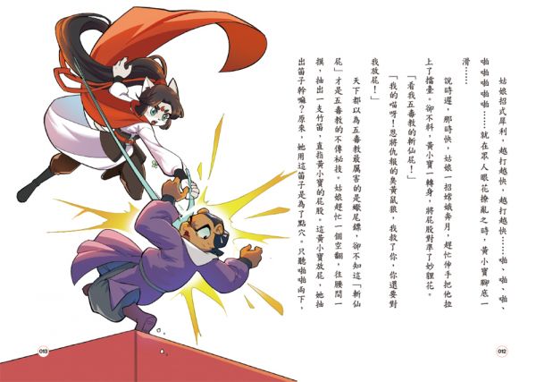 猛虎擺尾、流星追月、玲瓏點穴手、斬仙屁、後空翻等招式,動作清楚、節奏明快,閱讀故事,畫面十足。