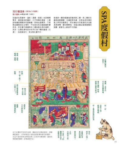這些泡澡、讀書等千姿百態的貓畫,光是看著就覺得賞心悅目,這類以貓擬人的作品,反映了平民百姓的生活、風俗和習慣,因此也是瞭解當時社會民情,頗具參考價值、饒富興味的資料。尤其本書所收錄的作品中,有描繪人力車或汽車、馬車等新式交通工具,也有描繪洋服或洋傘等文明開化時期的景物,這些都可以讓我們瞭解明治時代的生活樣貌,從這點來看,玩具繪也可說是相當寶貴的歷史資料。