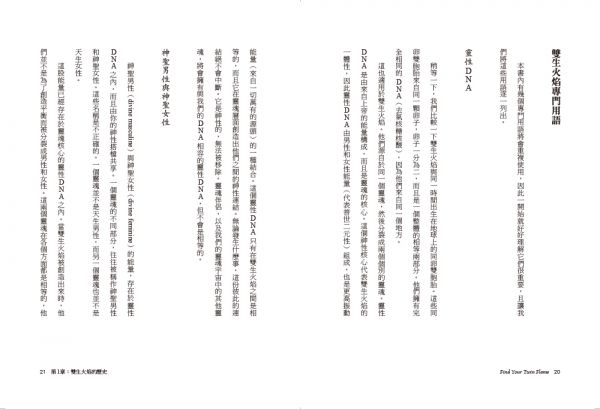 「假使你正在搜尋答案,想知道為什麼與某人的連結感覺截然不同,已經顛覆了你的人生,那麼本書值得一讀。它簡單解釋雙生火焰連結的方式令人印象深刻,將會為你的心智和靈魂帶來平靜。」 ——安東妮・瑪麗(Antoinette Marie) ,演員及編劇