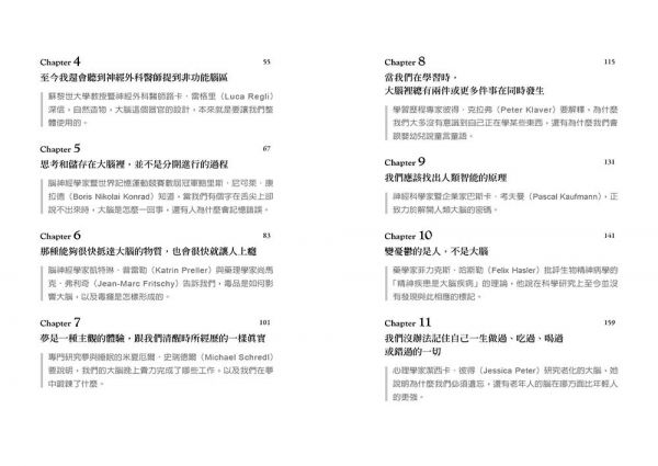 本書作者為了探索人類的大腦,訪問了17位世界頂級的神經科學家,