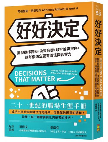「一本深刻又相當實用的指南,探討我們作為有限的生命,在追求豐富人生的過程中,最重要的一件事就是做決定。」