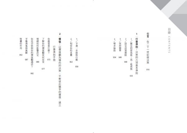 •基本行事準則:善用六大策略,包括如何判斷利害高低、設定期限、保持簡單等。