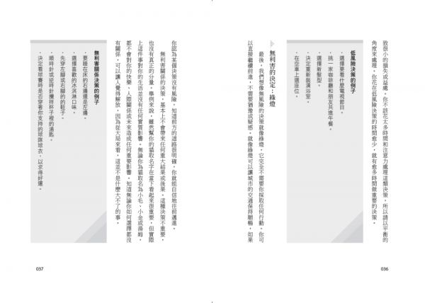 •重新定義成功:釐清每個階段追求的目標與意義,應用可重複、風險低的小決定持續前進。