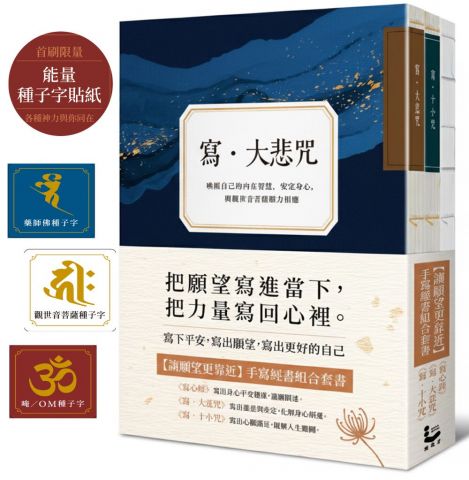 本套書組合,共三冊:《寫心經》+《寫‧大悲咒》+《寫‧十小咒》。