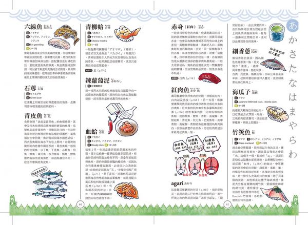 無論在迴轉壽司店或是日本料理店,看到菜單上想多了解的壽司種類,都可拿出本書翻閱,一定能找到想嘗試的品項,還能跟壽司師傅交流。