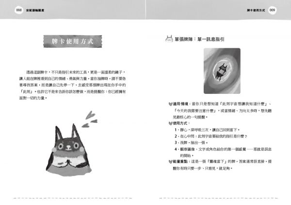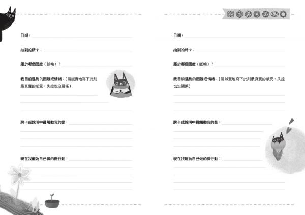 每張牌卡都有專屬的金句指引,以及立即可行的微行動。除了說明手冊,還搭配可書寫的情緒護照,紀錄並看見自己的變化。透過每一次抽牌與微行動,在混亂的世界中,找回屬於你的節奏。