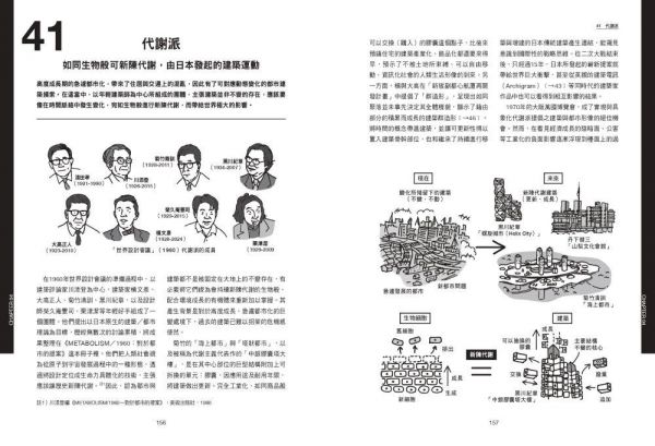 不輸主文的精采資訊,從全書一開始的「建築思想地圖」與「建築思想相關年表」,理解思潮發展脈絡。各章之間還穿插「建築旅行」主題專欄。至於本書最後的附錄「建築書的影響力」以及「拓展建築思想的世界/日本建築家」,特別介紹彙整了擁有強大影響力的建築著作與建築家群像。
