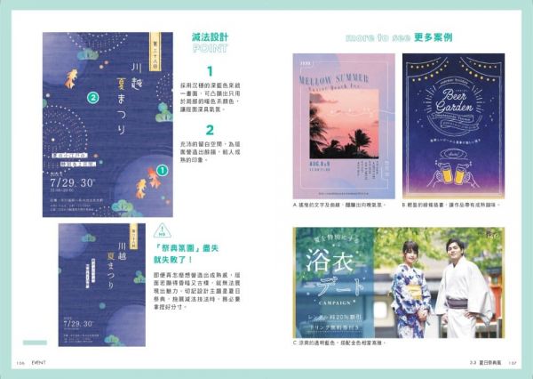 A:重點在於「加在什麼地方」上!建議先針對大、小標題與主視覺照片等,從主要元素的裝飾手法進行加法思考。讓版面提升熱鬧感與親和度的同時,也強調主要元素。也可以試著增添不同顏色及圖案。